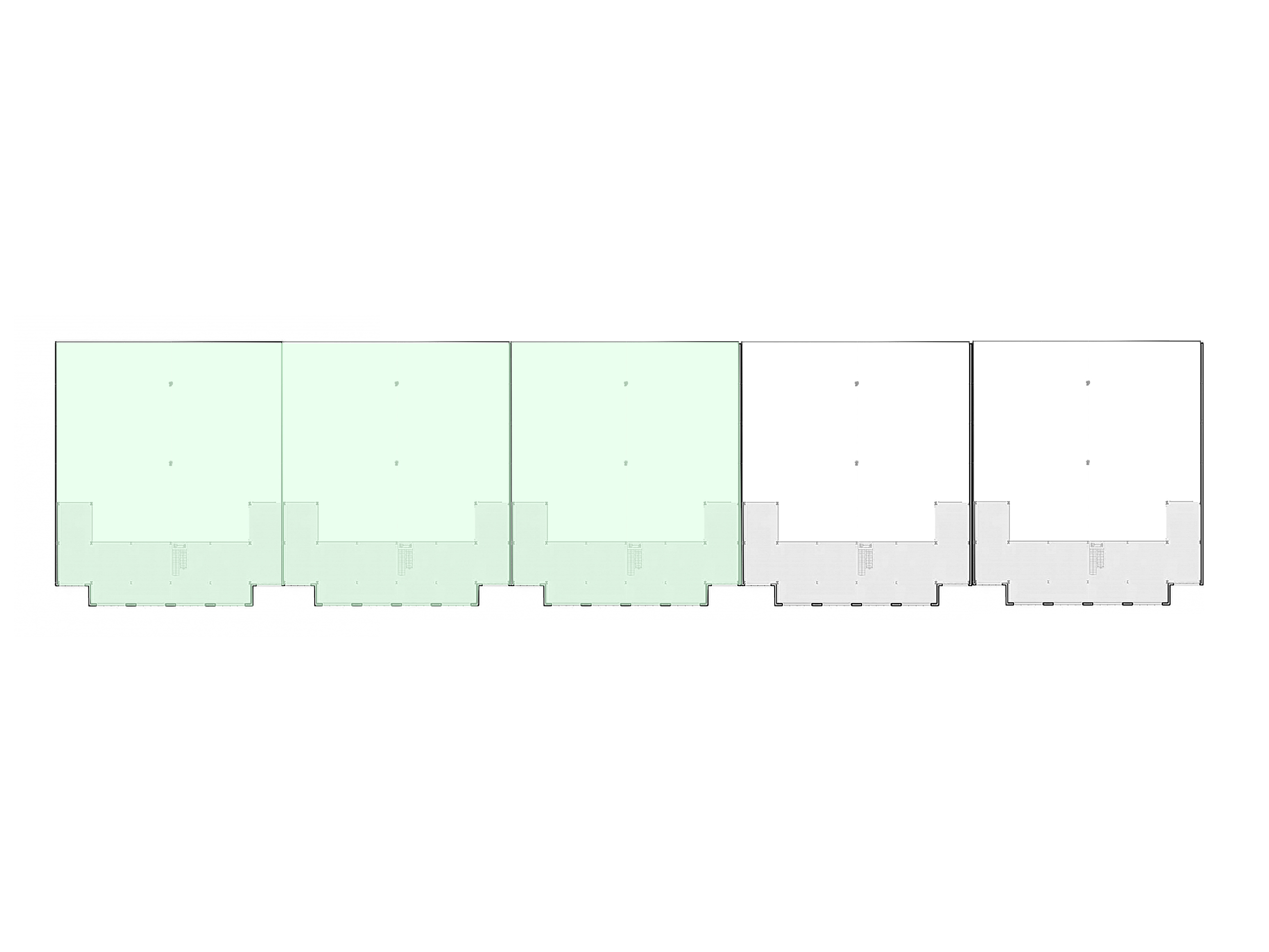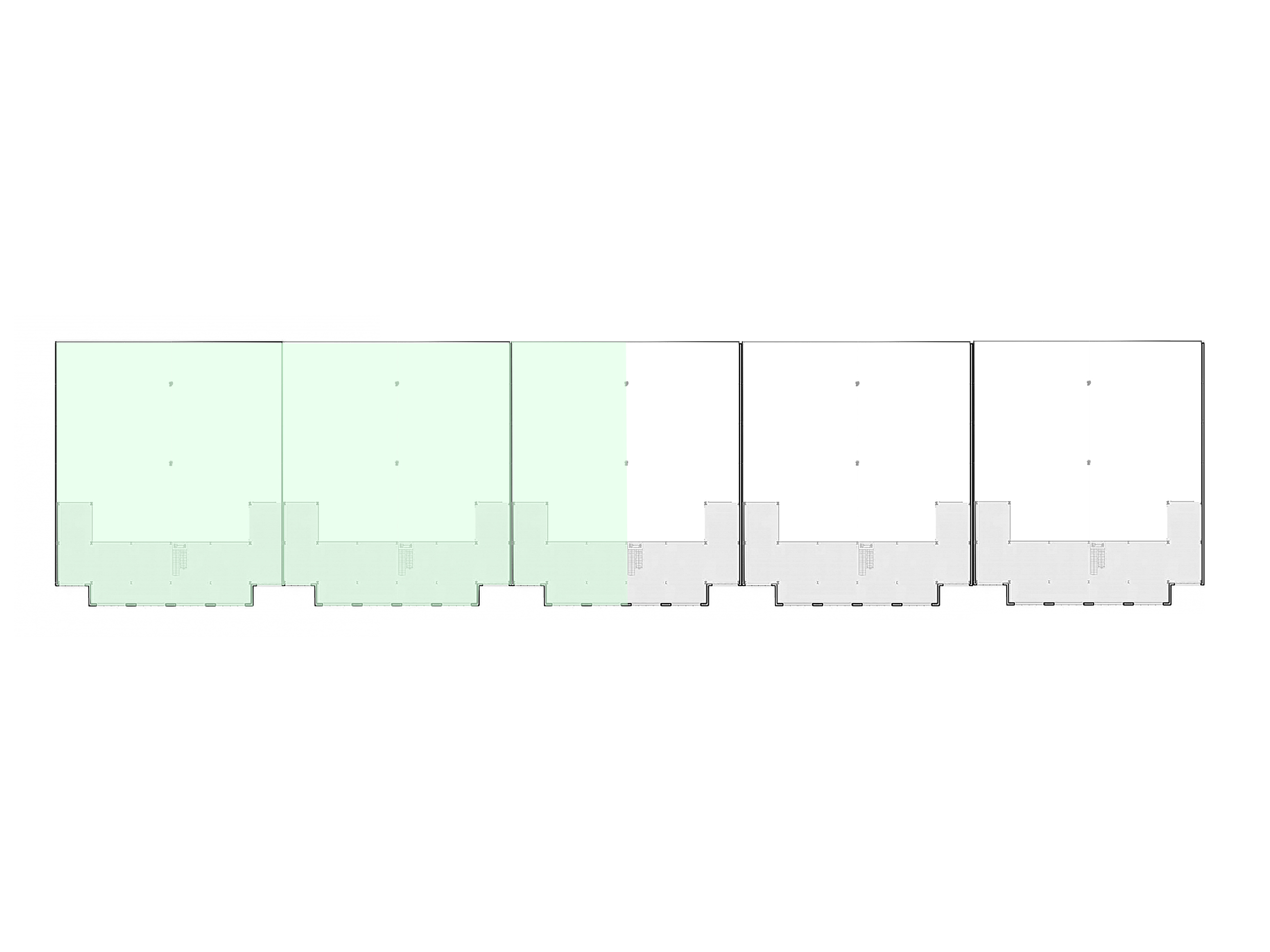 Общая площадь комплекса – 34 178 кв. м. Высота потолков 10 м и шаг колонн 17×12 м позволяют эффективно использовать пространство и размещать многоуровневые системы хранения. Нагрузка на пол – до 6 т/кв. м, уровень пола – 1,2 м для удобной погрузки.